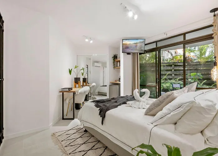 Apartmán Naousa Private Beach Bungalow se nachází 2 km od Noosa Spit Recreation Reserve a 1 km od Dolphin Point Lookout. Do centra města Noosa Heads se dostanete za 20 minut chůze. Mnoho možností stravování jsou k dispozici také v Noosa National Park, vzdálené 5 minut chůze od apartmánu Naousa Private Beach Bungalow.
